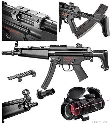 -. Feature : ドイツのH&K社が開発したMP5は、ストックやマズルアクセサリーなどのパーツ切替えで120ものバリエーション展開が可能とされています。2002年から日本の機動隊へと配備されたMP5-Jは、フランス向けのMP5-FやそのベースとなったMP5A5に近い仕様であるものの、日本という国の状況に合わせたオリジナルバージョンと言えます。東京マルイではMP5-Jに装備されている最新のリトラクタブル(伸縮)・ストックを実物を元に再現しました。また、大型のフラッシュハイダー、ドットサイト搭載用のマウントベースなど、MP5-Jに欠かせないパーツも備えています。 / シンプルな操作性:わずかな訓練で使いこなすことができるというMP5の操作性は、エアソフトガンでも体感することができます。セレクターやトリガー、マガジンチェンジなどの基本操作を直感的に行なえるのがミリョクです。各種マズルオプションに対応:フラッシュハイダーを取り外せば、サイレンサーなど14mm逆ネジ仕様のマズルオプションを取り付けることができます。 / リトラクタブル・ストック:通称「Fストック」と呼ばれるストックは、レバー操作ひとつで伸縮が可能です。ストック後部にはすべりにくいゴム製のパットを装備。また、本体両サイドを挟み込むようストックの支柱を金属製にしたことで、ストックをのばした時の剛性も確保しています。 / ロープロファイル・マウントベース:リアサイト前方に、ドットサイト専用のマウントベースを装備。別売のNEWプロサイトを取り付けることで、より正確なサイティングが可能です。アジャスタブル・リアサイト:金属製のリアサイトはドライバーで左右を調整でき、円形のパーツを回転させることで穴のサイズを4段階に切替えることができます。 / プレス仕上げのリアルなマガジン:装弾数50発、本物同様のスチールプレス製のアウターケースを採用したマガジンが付属します。