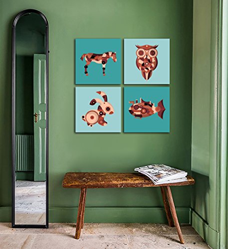 Stretched and Framed, ready to hang. Each panel has a black hook already fixed on the wooden bar for easy hanging out of box.