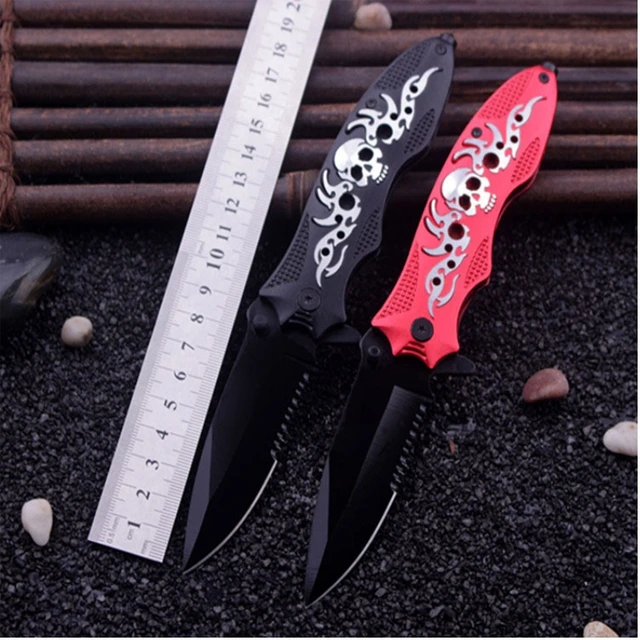 전체 길이: 2.0 센치메터 블레이드 길이: 8 센치메터 핸들 길이: 12 센치메터 폭: 2.8 센치메터 두께: 0.28 센치메터 가장자리: 440 경도: 상당 56HRC 표면: 블랙. 레드 핸들: 알루미늄 핸들 무게: 140 그램