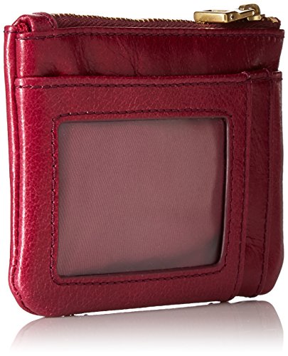 Measurements: 4.25"l x 0.25"w x 3"h; interior features: 1 key ring; exterior features: 1 id window, 1 credit card slot and 1 zipper pocket