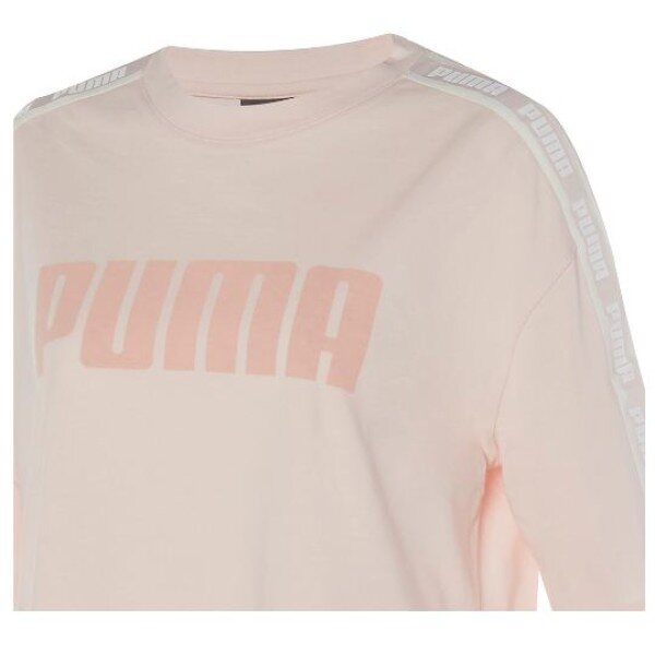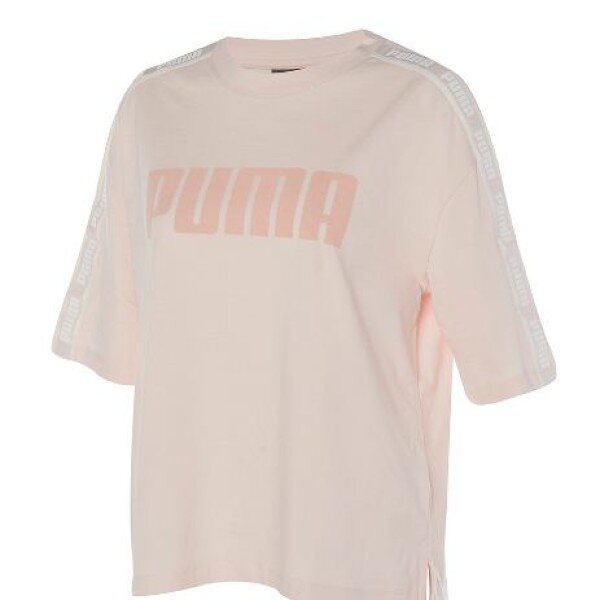 푸마 여성용 FD TAPE 반팔티푸마 로고 테이프가 소매에 덧대어진 루즈핏 여성용 반팔 티셔츠.푸마 로고 티셔츠 프린트 테이프가 어깨선을 따라 둘러져 잇고, 가슴에 위치한 PUMA 로고는 소프트하게 프린트되어 여성미와 레트로한 감성을 동시에 표현하는 제품. 앞면은 허리단에 넣을 수 있을 정도의 짧은 길이인 반면, 뒷면 길이는 약간 길어서 다양한 스타일링이 가능한 것이 장점.