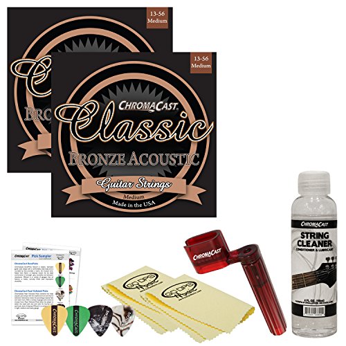 ChromaCast JB-AGAP-MED Acoustic Guitar Essential Accessory Bundle with 2 Sets of Classic Bronze...