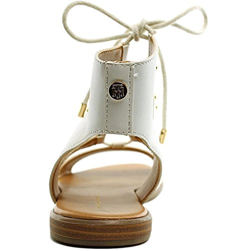Studio : Tommy Hilfiger Publisher : Tommy Hilfiger Binding : Shoes Product Description Ghillie lacing with tie at ankle. Open toe and heel silhouette. Man-made lining and footbed. Logo charm at heel. Sliver wedge. Man-made sole. Imported. With his all American preppy aesthetic, Tommy Hilfiger hasbeen designing clothing, shoes, jewelry, watches, fragrances, and accessoriesfor men, woman and children for the past decades. As the main designer for the brand, Tommy Hilfiger has not only set trendswith his apparel but also with his footwear line. Herewe have a wide range of Tommy Hilfiger's footwear styles that include leather and canvas sandals, boat shoes, wedges, espadrilles and flats. You can shop Tommy Hilfiger leather knee high boots or suede flat boots, work to work shoe styles such as pumps and closed toe wedges and leather loafers. Amongst the most popular shoes in his footwear line are the striped boat shoes and flatsfor casual days at the Hamptons or sunny days at the beach, his every day casual leather flats for women and casual oxfords for men, and his fashion sneakers to play tennis in Miami. At Shoemagoo we have an extensive collection of Tommy Hilfiger's shoes in many sizes, styles, textures, colors and heel heights. 0