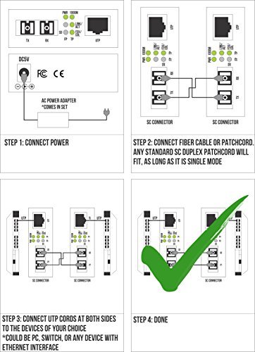 Single Mode Gigabit Fiber Media Converter - Built-In Fiber Module 20 km (12.42 miles) SC – to UTP Cat5e Cat6 10/100/1000 RJ-45 – Auto Sensing Gigabit or Fast Ethernet Speed - Jumbo Frame - LLF Support