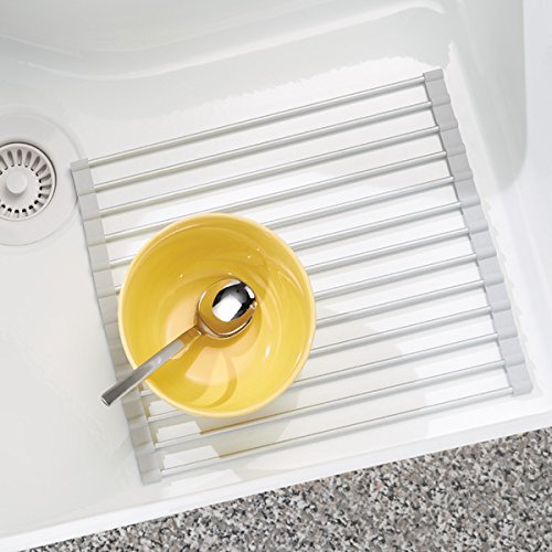 mDesign Rustproof Aluminum Kitchen Sink Protector Grid - Silver/Gray