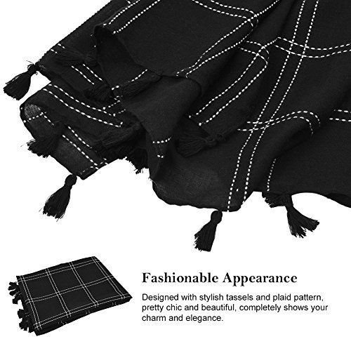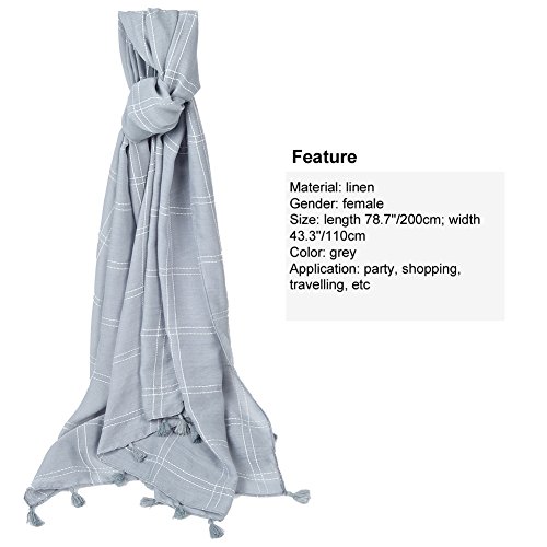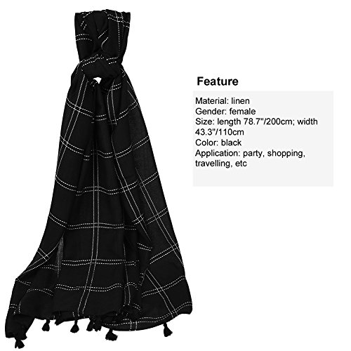 Binding : Apparel Product Description Information Fitibest Fashionable Linen Scarf- Makes you more beautiful and elegant! ? Designed with classic plaid pattern and modish tassels, this scarf is full of fashion elements so that perfectly matches with your clothes. Furthermore, its soft and smooth linen fabric assures comfortable wear experience. If you want to know more details or have any questions, please look through the detailed page or contact the customer service. Feature Material: linen Gender:?female Size: length 78.7"/200cm; width 43.3"/110cm Color: black Application: party, shopping, travelling,?etc Package list: 1* linen?scarf Notice * The actual color may vary slightly from the online image due to monitor color settings. * Please allow slight measurement deviation for the data. Package Including -1x linen scarf 0