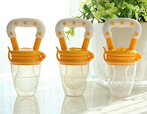 Teether Holder Best for Sore Gums Pain Relief Eco Friendly BPA Free Freezer Safe Baby Fresh Fruit And Vegetable Feeder Silicone Teat Yellow L