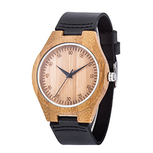 -. Title : BIOSTON Fashion Casual Dress Vintage Calf Leather Men's Bamboo Wood Watch Leather Wooden Watch