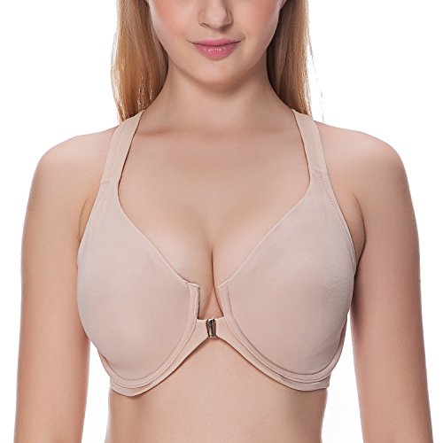 The easy functioning front hook closure make you easy to wear off.Non-padded cups with the underwire provides a comfortable support.Racer back design for comfortable wearing all day long.Feature