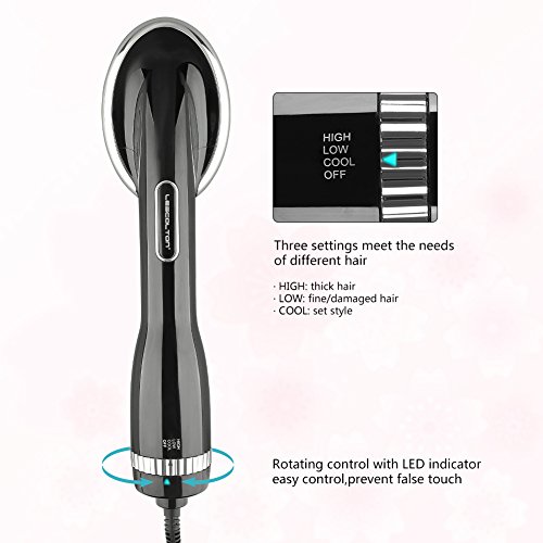Studio : KOOVON Publisher : KOOVON Binding : Misc. Product Description Be your own stylist at home! ? Perfect combination of hair dryer and styling comb,one step hair dryer and style,make your hair smooth, shiny and heath in a simple and easy way. ? Rotating control buttons with LED indicator,easier control,prevent false touch. ? Three setting design,meet the needs of different hair HIGH:thick hair LOW:fine/damaged hair COOL:set style