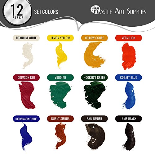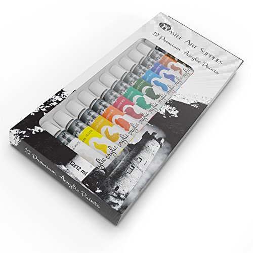 Castle Art Supplies Acrylic Paint Set for Beginners, Students or Artists, 12 x 12 millilitre Tubes, Vivid Colors