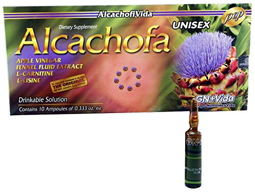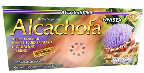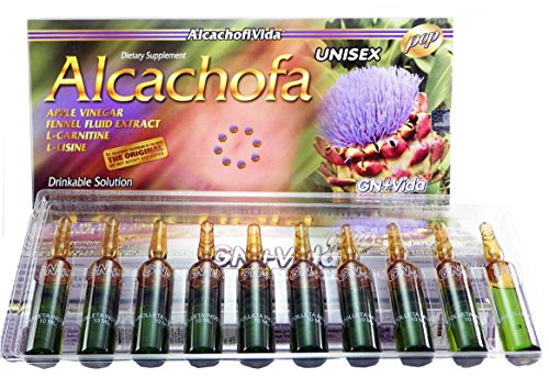 -. Binding : Health and Beauty -. Brand : Alcachofivida -. EAN : 7502217901116 -. Feature : Box of ten, 0.333-ounce drinkable glass ampoules of Alcachofa dietary supplement from GN+VIDA / Formula contains artichoke extract, apple vinegar, fennel fluid extract, L-carnitine, and L-lisine / Alcochofa/artichoke extract is high in antioxidants, helps with digestive problems, and reduces bloating / Easy to open glass vials/ampolletas ensure product purity / Not recommended for those with gall bladder blockages, those with allergies to artichoke or niacin, or if breastfeeding or pregnant -. IsAdultProduct : 0 -. Label : GN+Vida Alcachofivida -. LegalDisclaimer : Brand New in box! Items shipped DAILY! Orders placed and completed by 4PM PST are shipped out the very same day! -. Manufacturer : GN+Vida Alcachofivida -. Model : ALCACHOFIVIDA -. NumberOfItems : 44 -. PackageQuantity : 1 -. ProductGroup : Health and Beauty -. ProductTypeName : HEALTH_PERSONAL_CARE -. Publisher : GN+Vida Alcachofivida -. Studio : GN+Vida Alcachofivida -. Title : 1 Box/Caja Alcachofivida apple vinegar - Box with 10 drinkable ampoules / Caja con 10 ampolletas ingeribles