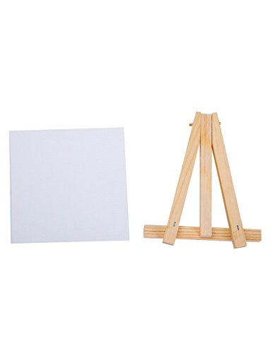 MEEDEN Mini Canvas & Easel Set of 12 PCS, 4" by 4" Small Stretched Canvas with 3" by 5" Tiny Wood Easel for Painting Craft Drawing Decoration Gift