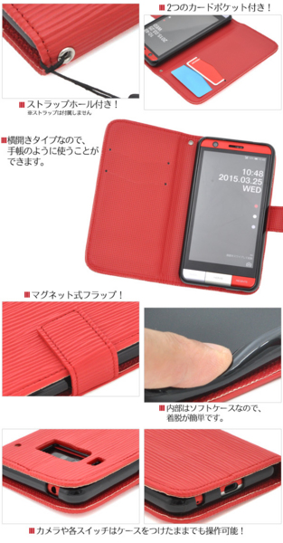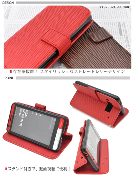 ストレートレザーデザインのINFOBAR A03 KYV33用スタンドケースポーチ。