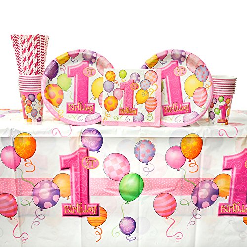 Studio : Unique Industries Publisher : Unique Industries Binding : Toy Product Description Doll up your little girl's party space for her big day with this cute 1st Birthday Pink Balloons Party Supplies Pack! They are a quick and easy way to add festive color to your daughter's first birthday party. Bundle includes 16 luncheon napkins, 16 dinner plates, 16 cups, 1 table cover, and 24 Cedar Crate Market Brand, FDA approved, biodegradable and chlorine free straws. Accommodates 16 guests! 0