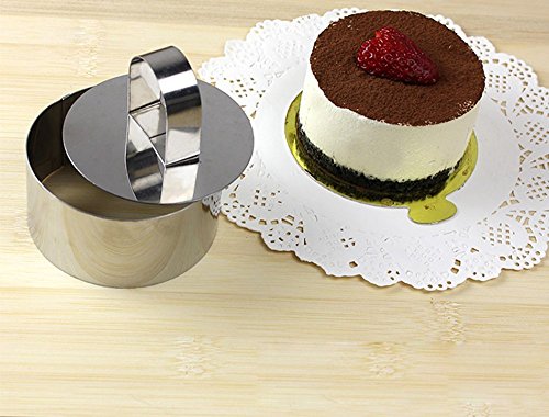 YOUDirect Stainless Steel Cake Molds - Set of 5 Dessert Cake Mousse Mold Mini Baking Mold with Pusher Cake Rings for Desserts Making, Silver