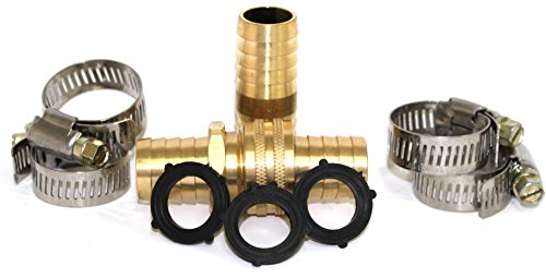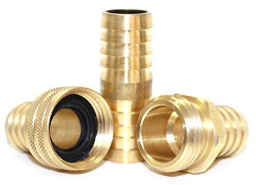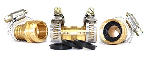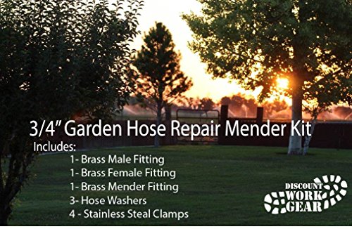 3/4 Inch - GARDEN HOSE REPAIR MENDER KIT: Brass Barbed Fittings (NO LEAD) with Stainless Steel Clamp for Each Fitting. Includes 1-Male, 1-Female, 1-Mender fittings and 3 extra Hose Washers