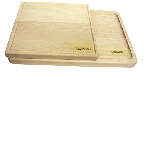 2 Piece Set - KayMetta Maple Reversible Cutting Board Set of 12" x 18" x 1.25" and a 12" x 12" x 1" Cutting Boards