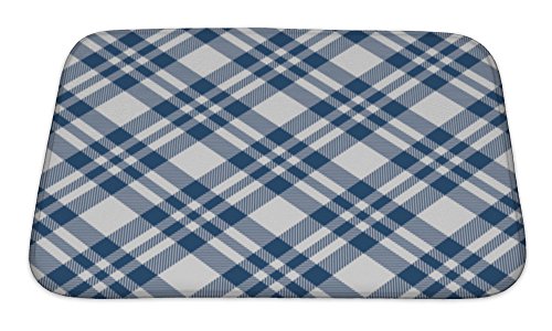 Gear New Checkered Tablecloths Pattern Blue Endless Bath Rug Mat No Slip Microfiber Memory Foam
