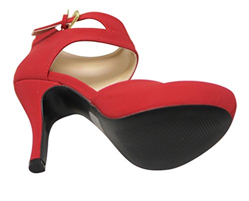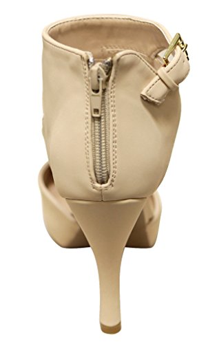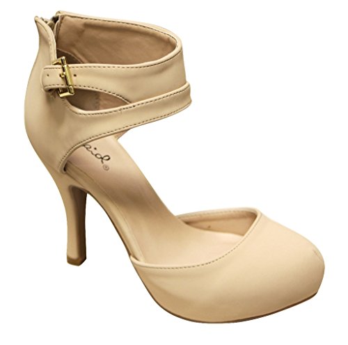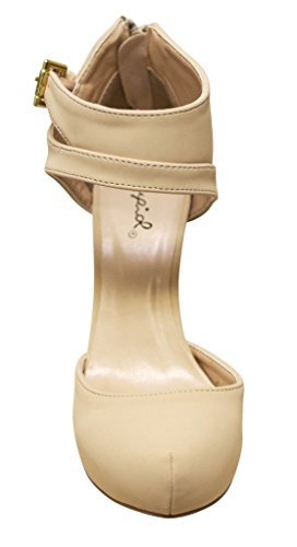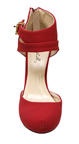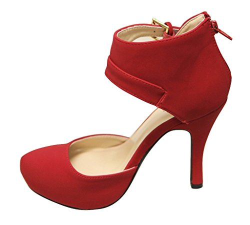 Qupid Trench-244 Women's round toe high heel zip closure buckle ankle straps Nubuck shoes