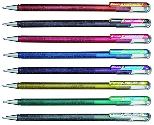 -. Title : Pentel Hybrid Dual Metallic Sparkling Gel Ink Pens Assorted Colors - Pack 8