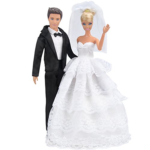 Gorgeous Set – Each order comes with 1pcs wedding dresses and 1 sets of groom suit; all wonderful for playing alone or with friends. ( Wedding gown comes with veil )
