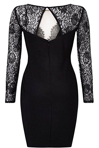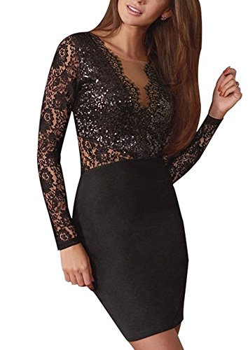 Long Sleeves Lace Sequin Embellished Bodycon Party Dress Black