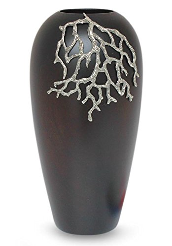 Handcrafted of sleek Thai mango wood, this elegant vase is adorned with pewter. Jaifah aksornsri evokes a coral Reef with her exquisite design.