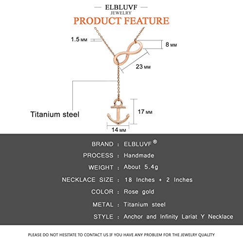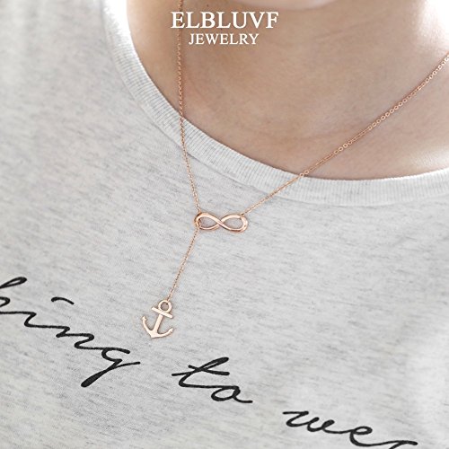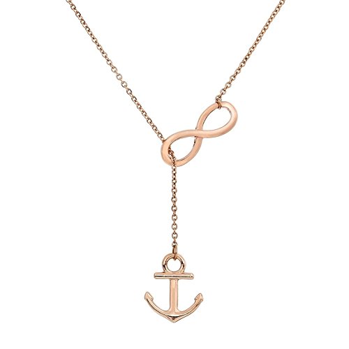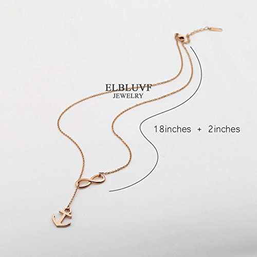 ELBLUVF Rose Vergoldet Edelstahl Handmade Anker und Infinity Lariat Y Halskette 45,7 cm