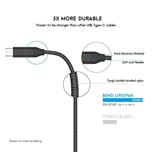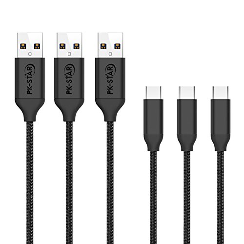 USB C Cable,PK-STAR USB C to USB 3.0 Cable [3-Pack 6.6ft] Extra Long Nylon Weave Quick Charging Cable with Reversible Connector for Google Pixel XL,LG G5/V20,HTC 10,Nexus 5X/6P and More
