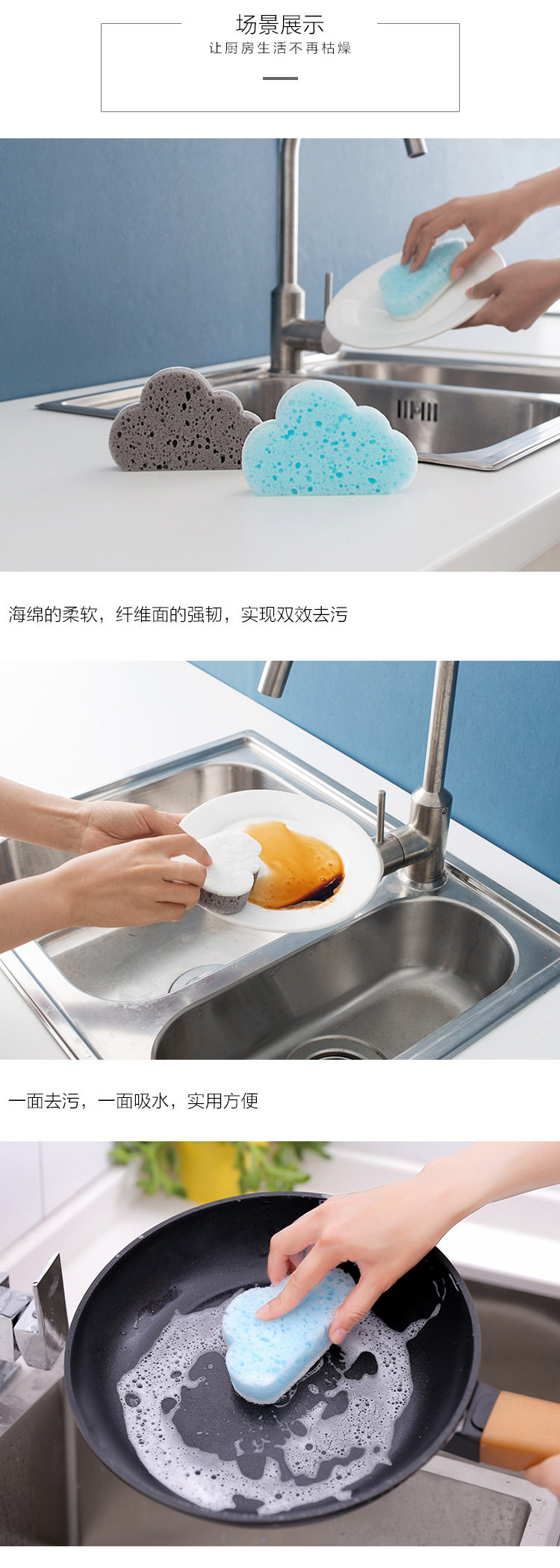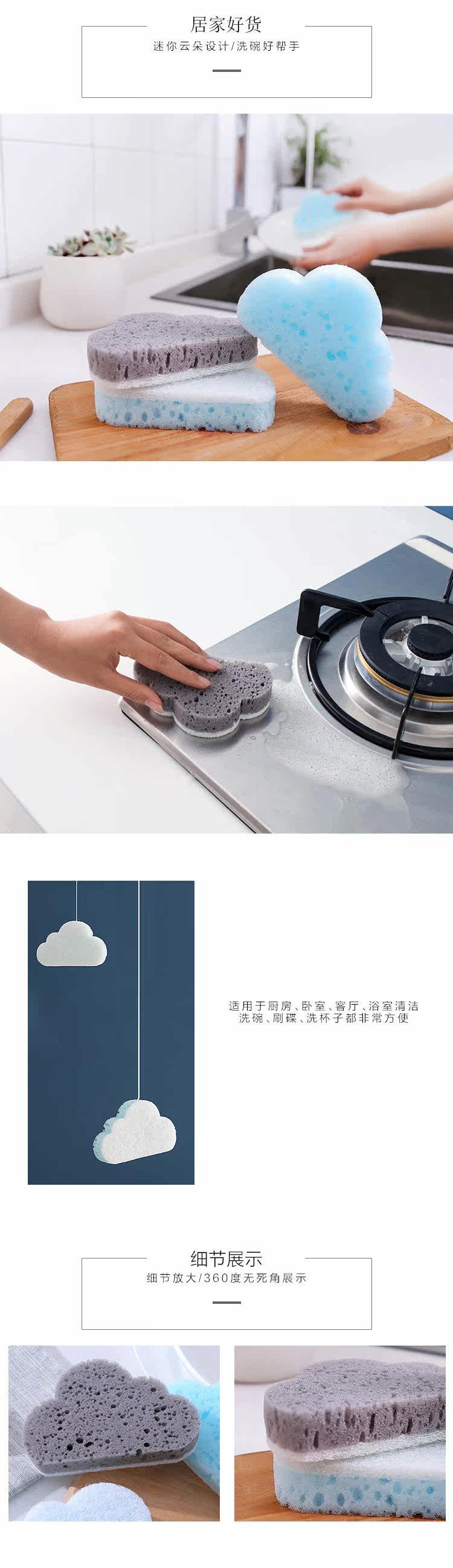 云朵洗碗海绵擦厨房创意洗锅洗碗刷家用吸水清洁去污百洁布