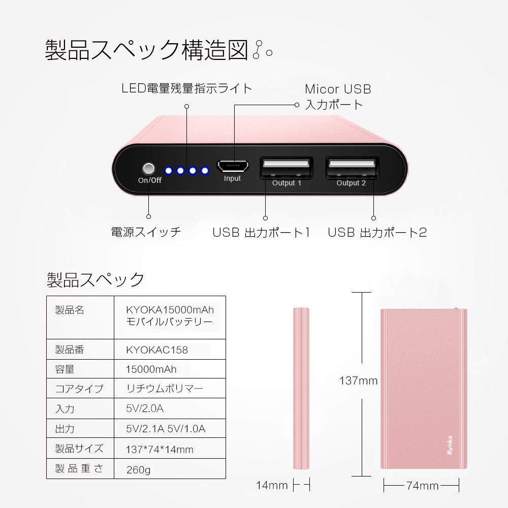 Two output ports are installed and it is possible to charge two smartphones at the same time.