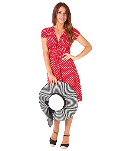 Cute Sundress Various Patterns Short Sleeve Or Sleeveless. --- This beautiful stretch dresses highlight and flaunt feminine curves. --- Comfortable jersey material, not transparent, crinkle free, machine washable, low cut V-neck, twisted front, back tie belt fastening --- Model 6147: spotted pattern, length from shoulder 35"/89cm, 95% Viscose, 5% Elastane, sleeveless --- Model 6610: leaf print, short cap sleeve, Length from shoulder 33.5"/86cm, 98% Viscose, 2% Elastane --- Model 6488: Polka dot print, short cap sleve, length from shoulder: 35"/89cm, 98% Viscose, 2% Elastane --- Model 6252: Rose print, sleeveless, length from shoulder 34"/86cm, 95% Viscose; 5% Elastane --- Model 6309: Bold floral print, sleeveless, length from shoulder 34"/86.5cm, 95% Viscose; 5% Elastane --- Model 6607: Aztec print, sleeveless, length from shoulder 33.5"/86cm, 98% Viscose, 2% Elastane --- MOTHER-TO-BE? Take pleasure in feeling comfortable and sexy throughout the magical time of pregnancy. The loose fashionable design under the waist and stretchy fabric will instantly update your wardrobe during maternity period. --- Krisp is a dynamic fast fashion retail group based in London that focuses on delivering catwalk style looks and all the latest trends at value for money prices. Our target audience is the fashion conscious 15-35 women's wear market. For more fashion accessories and clothing visit AMAZON Krispclothing shop front.Feature