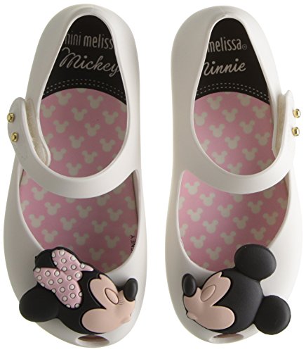 Precious mary jane toddler shoes. Minnie and mickey mouse kissing detail. Made in brazil, 100 percent recyclable plastic.Feature