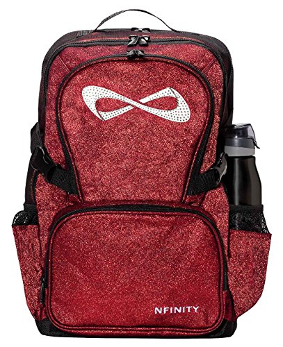 -. Binding : Misc. -. Brand : Nfinity -. Feature : Lightweight non-transferring sparkle material / Large volume interior design with 3 compartments and a padded lap top sleeve / Features a large main compartment, large enough to hold the Nfinity Shoe case / Top grab handles and two water bottle holders / Embroidered Nfinity Logo with clear rhinestones -. IsAutographed : 0 -. IsMemorabilia : 0 -. Label : Nfinity -. Manufacturer : Nfinity -. ProductGroup : Sports -. ProductTypeName : SPORTING_GOODS -. Publisher : Nfinity -. Studio : Nfinity -. Title : Sparkle Bling Nfinity Backpack