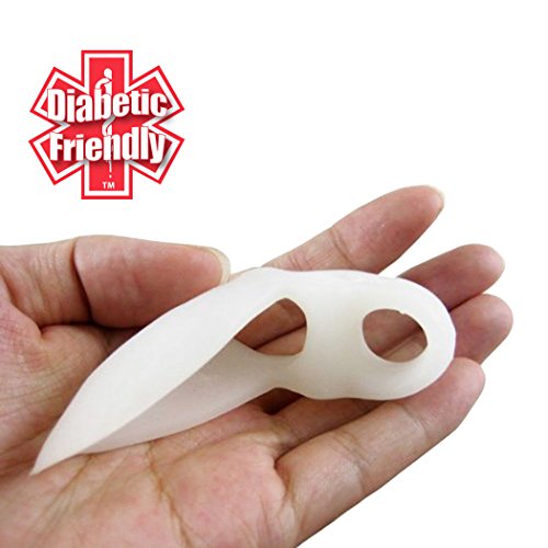 Studio : FootMatters Publisher : FootMatters Binding : Health and Beauty Product Description Relieve bunion (Hallux Valgus) pain and align crooked toes to prevent further damage. Medical grade silicone soft gel cushions the sensitive skin in bunion area, easing friction and pain. Advanced toe separator fits over two toes for better alignment and comfort. Separate overlapping and crooked toes, realigning your big toe with other toes and preventing additional problems like callus and corns. One size flexible design fits most feet. Hand wash with warm water, mild soap, air dry. 0