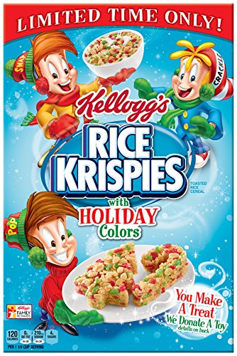 Feature : Start your day off the right way with Kellogg's rice krispies with holiday colors cereal. / Enjoy it as a great breakfast in the morning or a new look for your rice krispies holiday treats this year. / The 9.9-ounce box is the perfect size for a batch of rice krispie treats. / The fun holiday colors add a special touch to breakfast or baked goods. / This item ships as a pack of 12 9.9-ounce boxes.