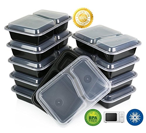 GREEN DIRECT (20 PACK) 2 COMPARTMENT MEAL PREP CONTAINER BENTO BOX WITH LID LEFTOVERS 21 DAY FIX PORTION CONTROL BLACK BOTTOM CLEAR COVER MICROWAVE SAFE GOOD FOR KIDS LUNCHBOXES SCHOOL LUNCH