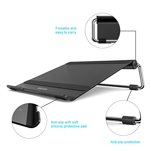 -. Feature : Compatible For Various Laptops:Fit for laptops up to 17 inches: Macbook, Macbook Air, Macbook Pro and many others. / Multi-Angle: This adjustable laptop stand provides multiple viewing angles for your laptop. And the ergonomic design makes for easy watching and typing, relieving neck, shoulder and spinal pain. / Solid Construction: With 3mm thick aluminum, this stand is 20% thicker than normal stands and 3 times sturdier. The aluminium material is also good for heat dissipation. / Anti-Slip Pads: The anti-slip and anti-scratch silicone pad gives your laptop comprehensive support and the laptop will not slide when placed on this stand. / Material: The durable aluminum stand is light-weight and solid, and combined with a sleek and stylish design. OMOTON's laptop stand comes with one year warranty.