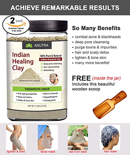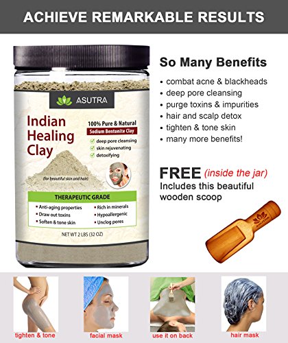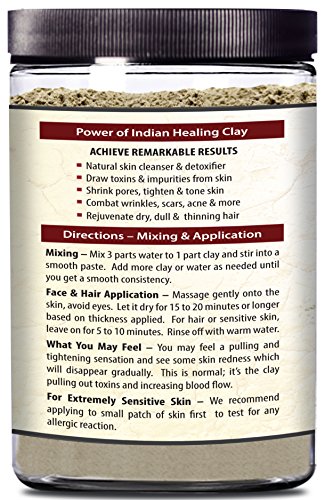 -. Title : 100% Pure Sodium Bentonite Indian Healing Clay, THERAPEUTIC GRADE, Natural & Organic, Revitalize Skin & Hair, Combat Acne, Clay Face Mask, Deep Pore Cleansing
