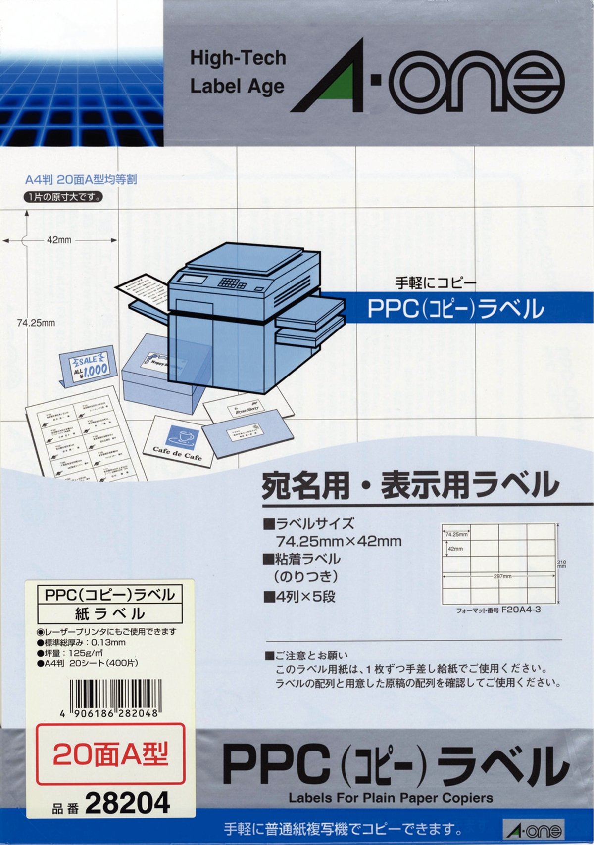 -One (A-one) PPC (copy) label paper label A4 size 20 sided A-type address and display for 20 sheets (400 pieces) 28204 (japan import)