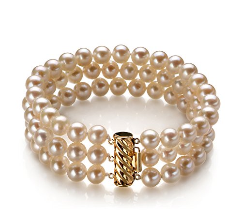 -. Title : Dianna Collection - Triple Strand White 6-7mm AA Quality Freshwater Pearl Bracelet