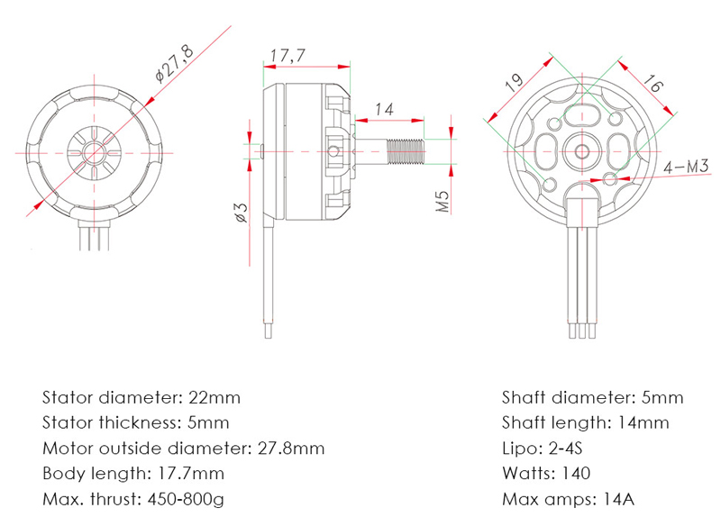 Motor outside diameter: 27.8mm