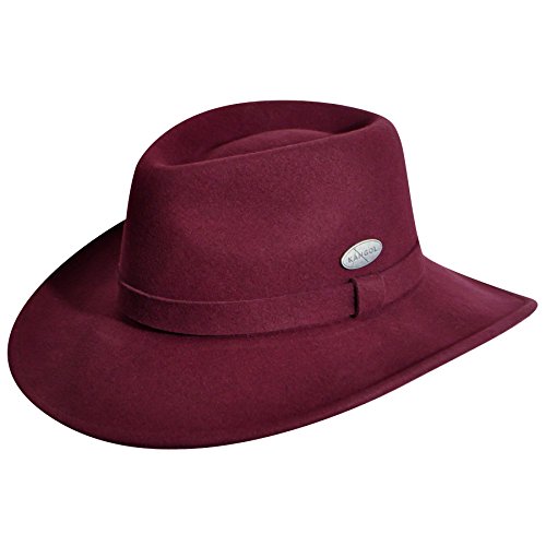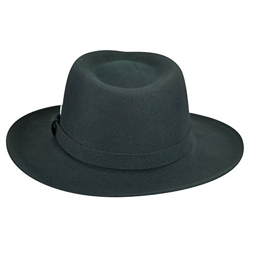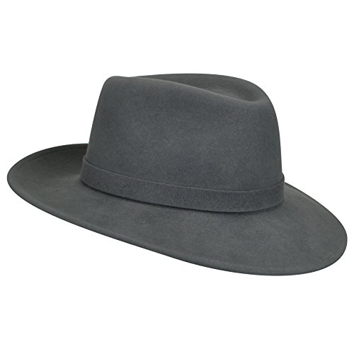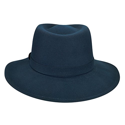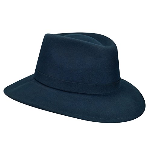 Product DescriptionLite felt is made in the USA from a revolutionary formula that makes wool crushable, shape retaining and water repellent. This classic wide brim trilby features a self-fabric band with teardrop shaped crown.0