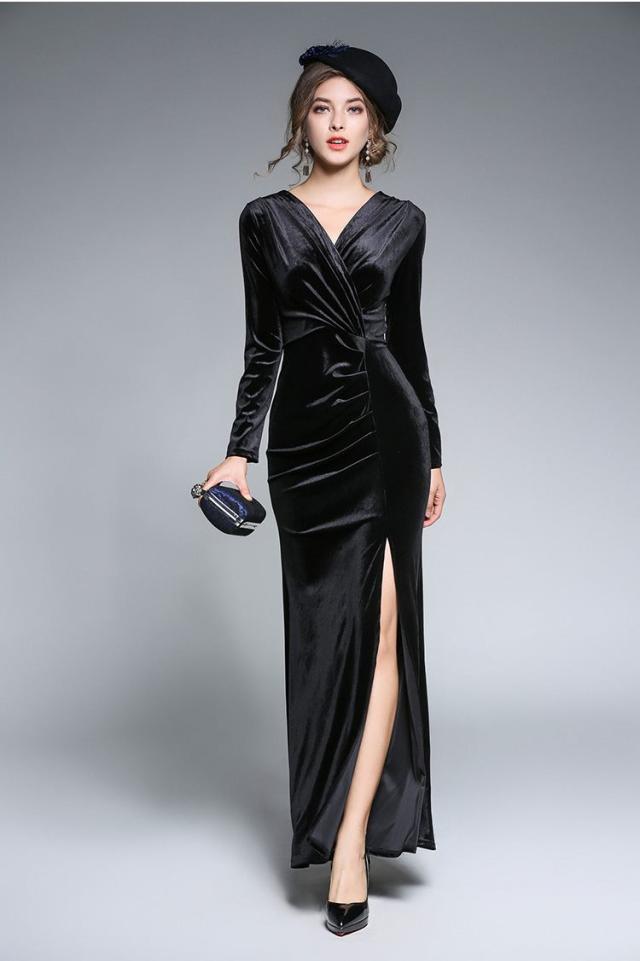 ベロアの素材でコージャスのボディラインをなぞるタイトシルエットドレス。