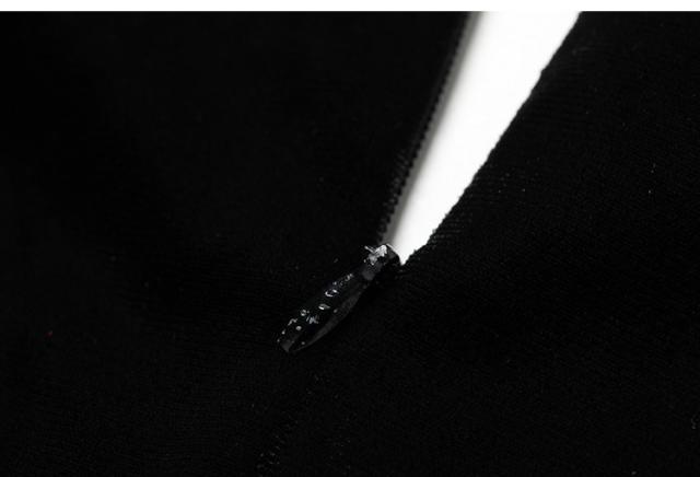 深いVネックデコルテをきれいに見せられ、スカートの裾は太ももまで開け、セクシーの雰囲気に。