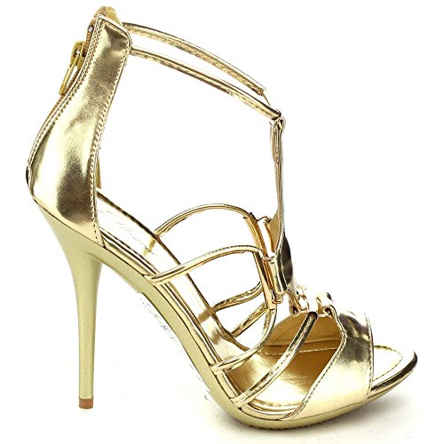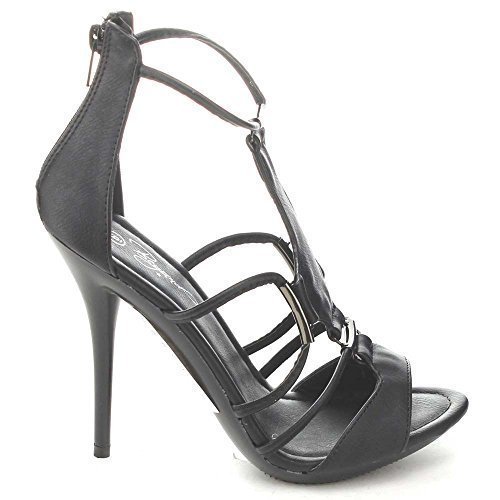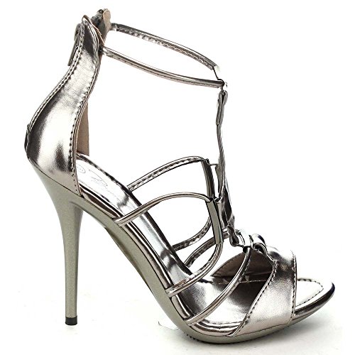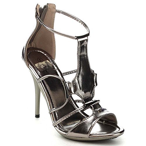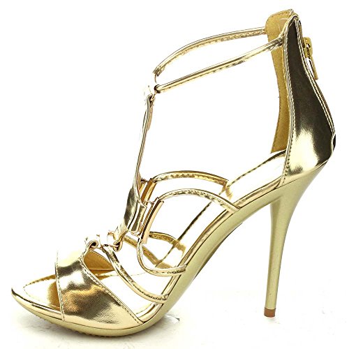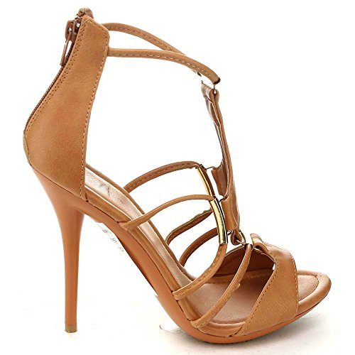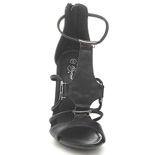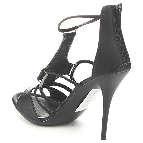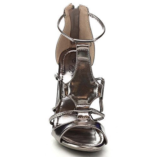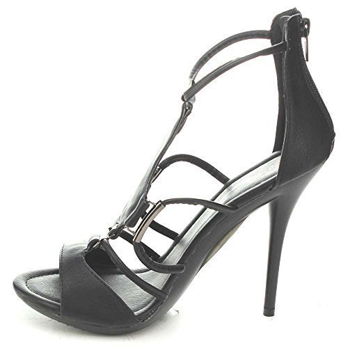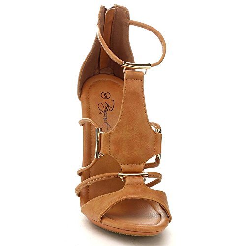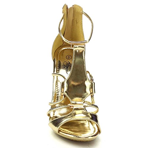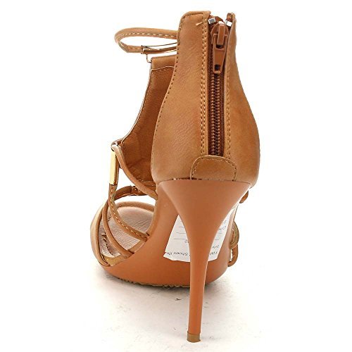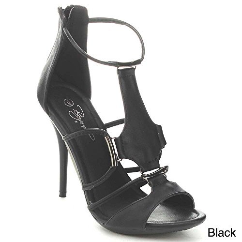 | Nature Breeze Focus-02 Women's Peep Toe T-Strap Back Zip Stietto Heel Dress Sandals |