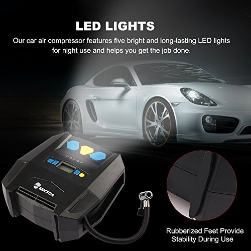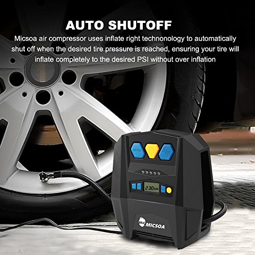 - AUTO SHUTOFF : Micsoa air compressor uses inflate right technonology to automatically shut off when the desired tire pressure is reached, ensuring your tire will inflate completely to the desired PSI without over inflation