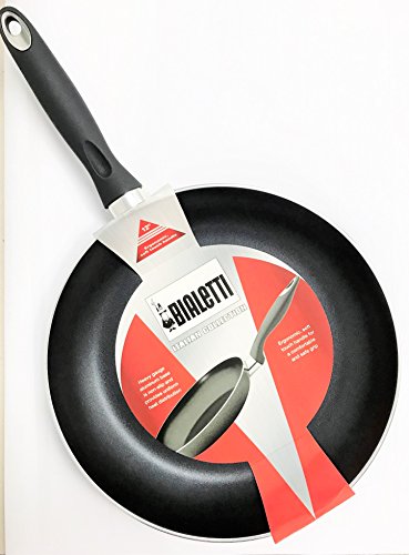 Bialetti's 10-inch saute pan is designed for everyday convenience. The Italian Collection offers simple, high utility designs that make cooking an enjoyable experience and comes with an assurance of quality and durability thanks to its superior 3.2mm gauge aluminum construction. The glass lid features a pour spout for convenient straining of water from vegetables and pasta. Extra-long soft-touch handles for easy and comfortable handling. Handles are heat resistant and feature a stainless steel accent. Double layer non-stick interior for added durability makes sauce pan easy to clean. The base of the sauce pan is designed to conduct heat quickly and evenly. Bialetti's Italian Collection cookware is suitable for use with all conventional stove tops; including electric, gas, ceramic and glass. Bialetti cookware is safe to use with nylon, silicone or wood utensils. Do not use metal utensils on the nonstick cooking surface. Not for use on induction cooktops or in the oven. Bialetti cookware is dishwasher safe. For best results, hand wash with non-abrasive cleansers and liquid dishwashing soap. Bialetti began in Italy, but has become a leading brand around the world for its high-quality products bringing simplicity, functionality and beauty to the kitchen. Bialetti's advanced technology and distinctive styling combine to create cookware that's simple to use and simply beautiful. Bialetti is authentically Italian, where the kitchen is the heart of the home.Feature