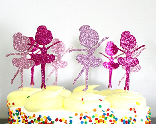 Hot Pink and Pink Glitter Ballerina Cupcake Toppers, Ballet, Dancers, Tulle- Quality (Set of 20 Ballerinas)